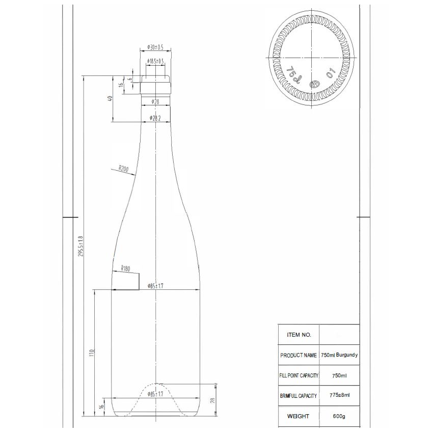- ソーダ石灰ガラス素材: 高い光透過率と耐衝撃性のバランスが食品グレードの安全基準に準拠しており、紫外線によるワインの品質劣化を防ぎます。.